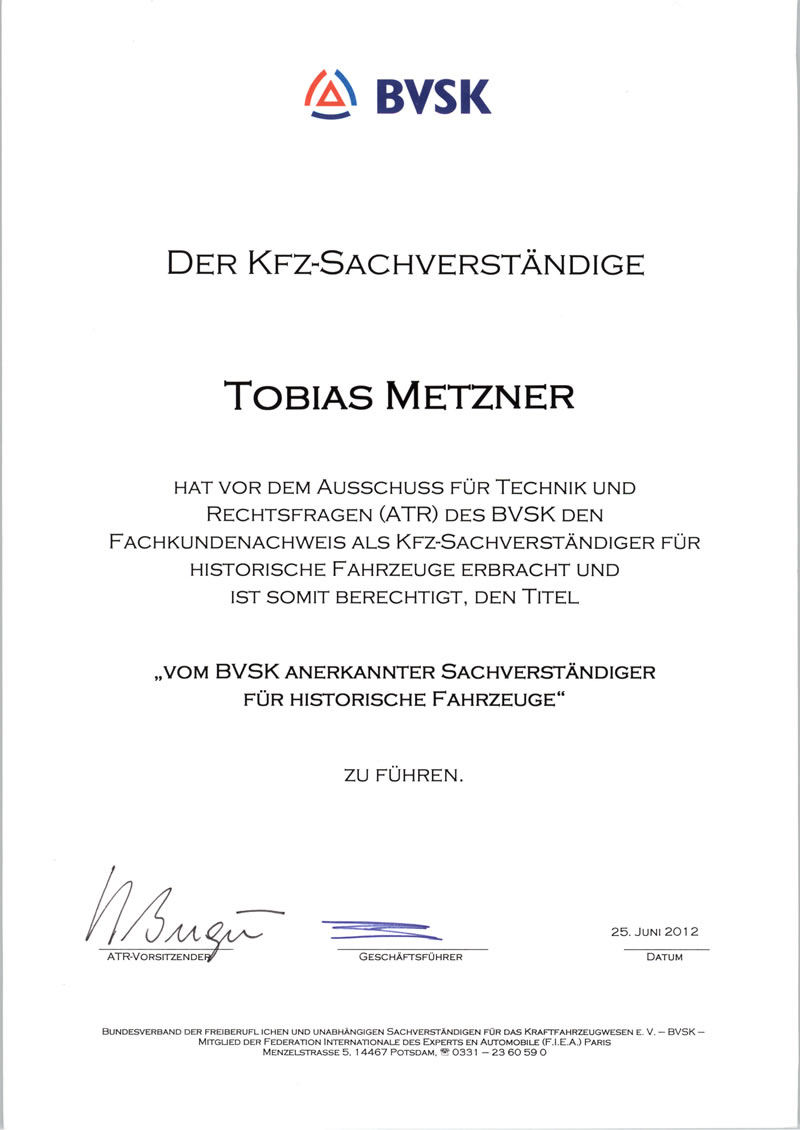 - BVSK anerkannter Sachverständiger für historische Fahrzeuge