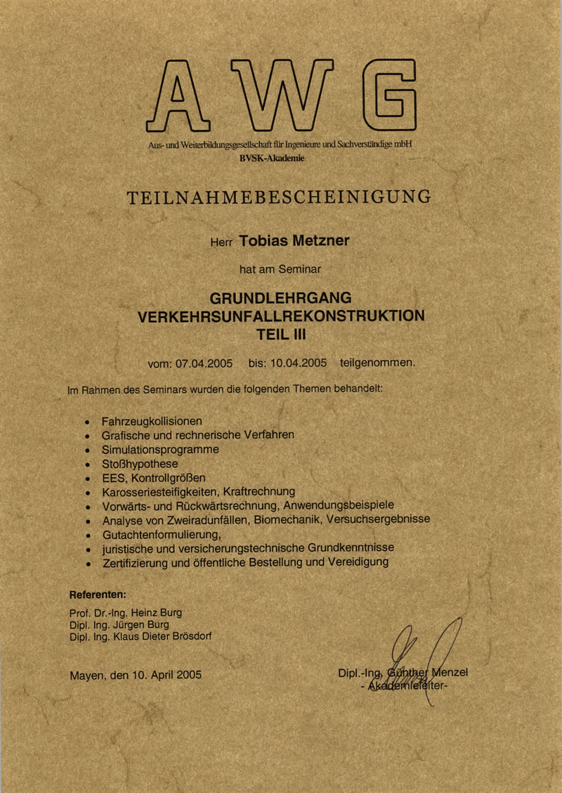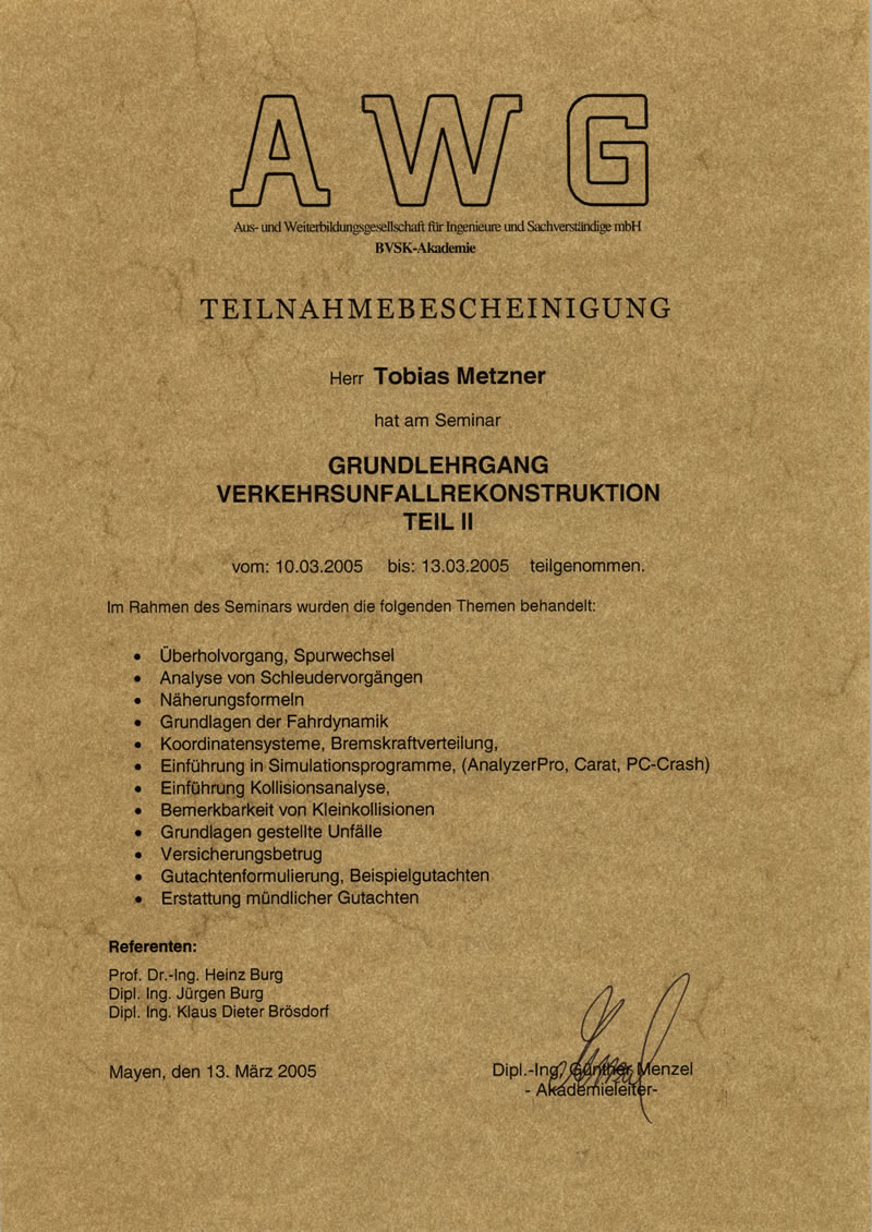 - Von der IHK-Frankfurt am Main öffentlich bestellt und vereidigt für Kraftfahrzeugschäden und -bewertung